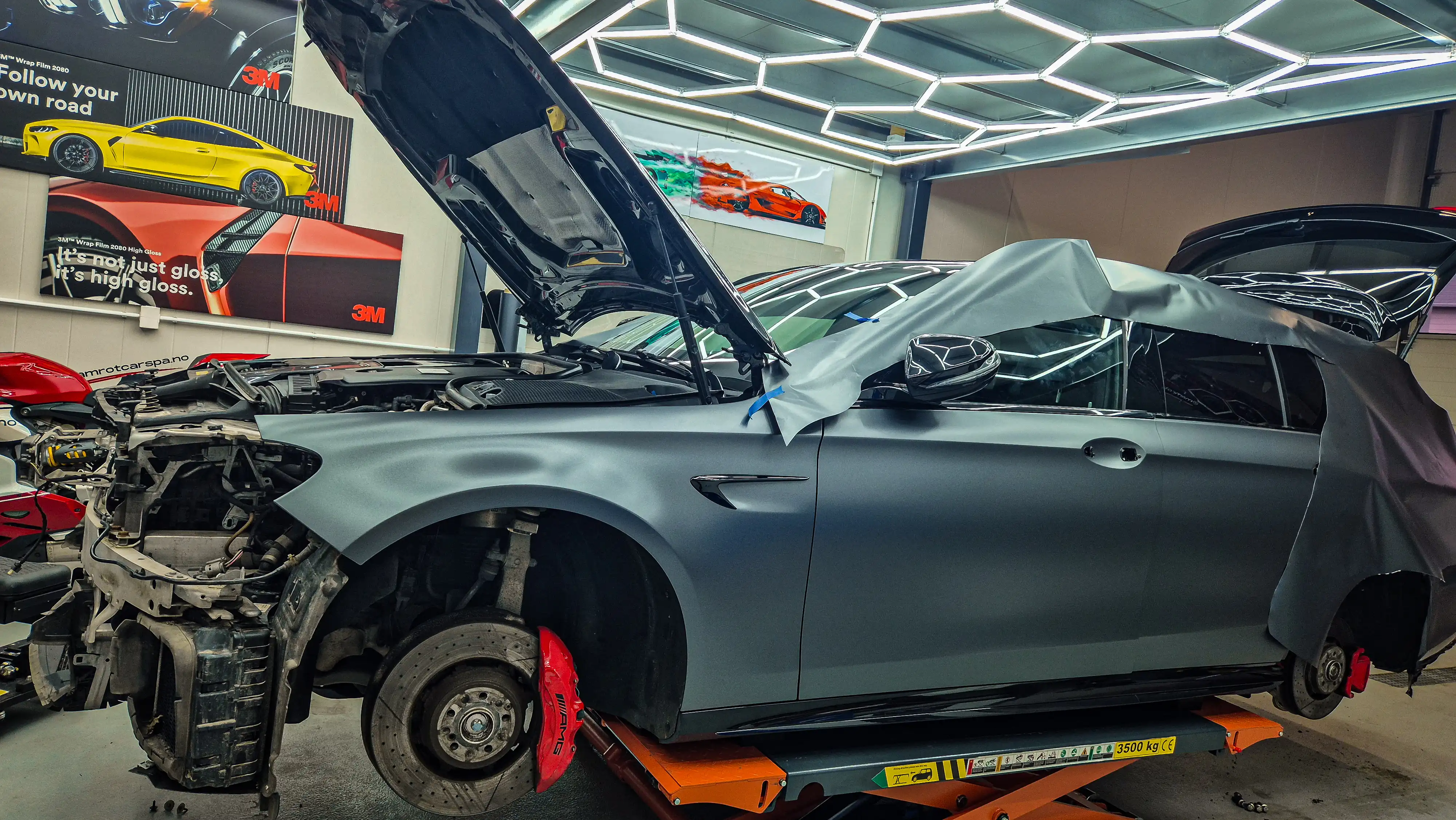 Hatt bilen, en E63s AMG til foliering her, meget fornøyd med service, resultatet og veiledning underveis, anbefales skikkelig. God kommunikasjon underveis og tydelig avtale på både pris og endringer jeg selv valgte underveis. Her blir det stopp oftere for coating og oppdatering. Var som å få ny bil😉